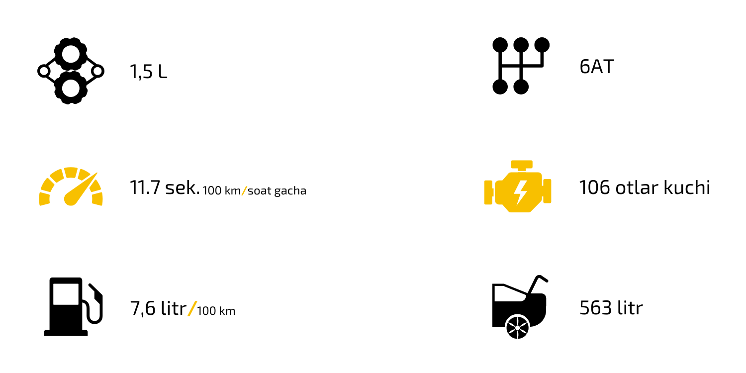 Modelda zamonaviy multimedia tizimi, sensorli displey va smartfonlar bilan integratsiya imkoniyati mavjud. Ichki makonda shovqin va tebranish darajasi kamaytirilgan bo‘lib, uzoq safarlarda ham qulaylik saqlanib qoladi. O‘rindiqlar ergonomik shaklda ishlab chiqilgan bo‘lib, kundalik foydalanish uchun moslashtirilgan.